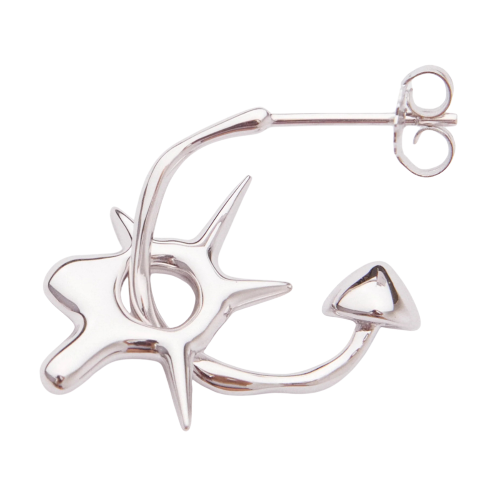 - Spike charm threaded through sleeper earring.