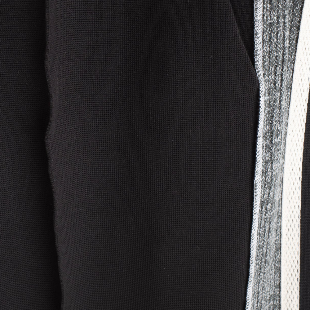 Wide leg, relaxed fit, pintuck front, contrast Knitted textured side panel with woven taping detail.